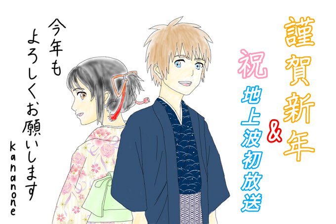 君の名は 地上波初放送記念で、瀧くんと三葉描きました!