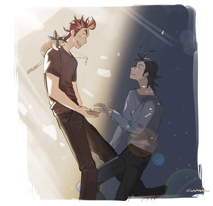 担当と知的好奇心と教育番組のお兄さん感あるかなと思って選んだ朱雀さんとご本家様の御尊顔 Mくん目開けたり閉じたりウィンクしたりとかカメラの寄り具合とかが人によって変わるのどうなってんの すごすぎでしょ