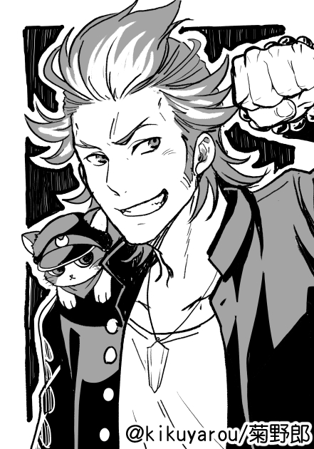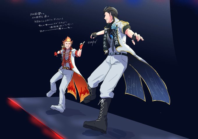 玄武くんお誕生日とライブお当番記念で以前描いたクロスマイク絵再放送~ライブ、朱雀君の頭の位置が玄武くんより低いのほんとにすごい