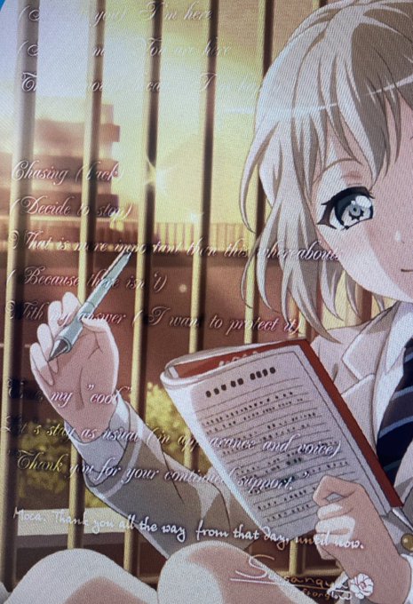 よく見ると自分の好きなSasanquaの歌詞とストーリー内で1番泣けるシーンで蘭がモカに言うセリフがSasanquaのジャケットの手書き文字風に入ってるんですよ