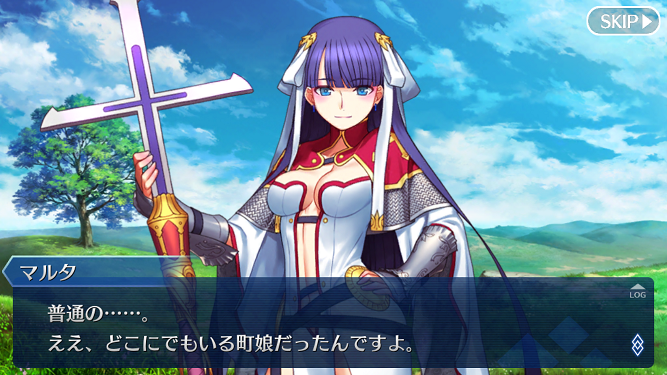 1章では狂化英霊としての対面だったが、聖女らしく淑やかな女性像としての振舞を見せる(うん…)