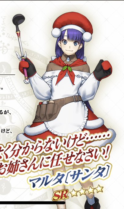 クリスマスのおかげで、まさかのマルタ来た。 ちょっとずつサーヴァント増えるの嬉しい。 サンタマルタかわいいよね!特にこの🤔て感じの顔が好き。