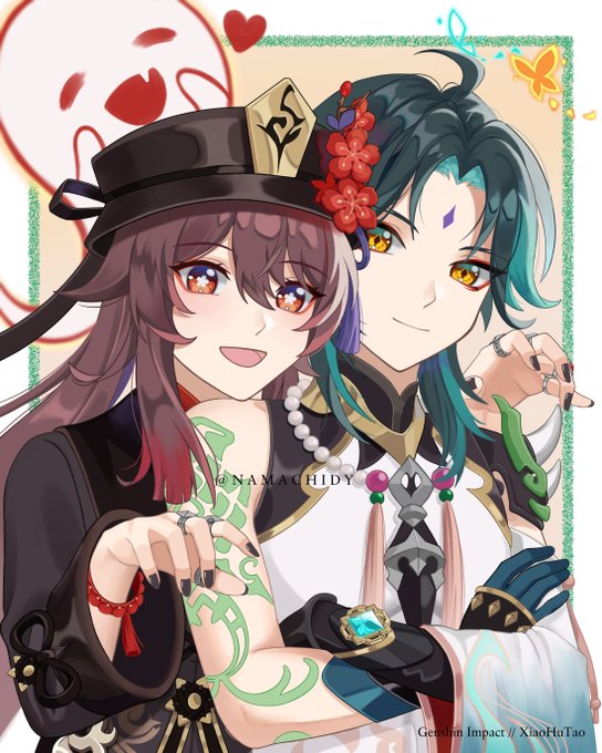 look, Xiao folds hands & smiles, bcs it's HuXiao. almost similar to my art~
