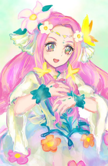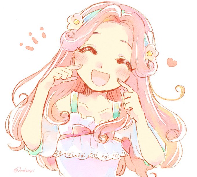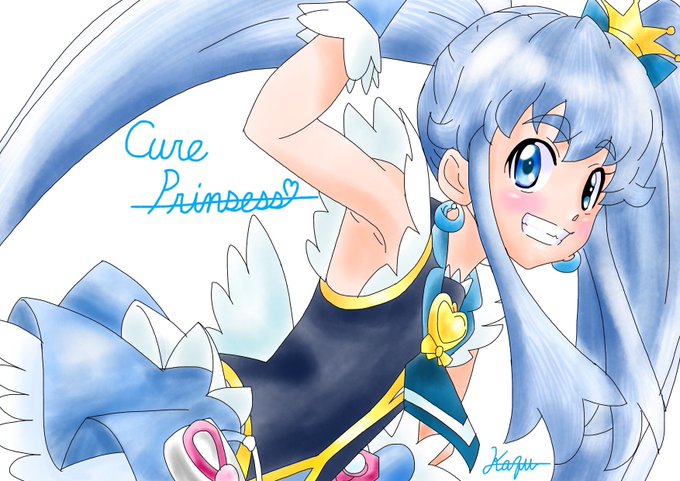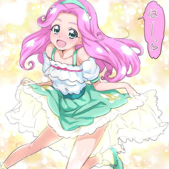 「『行かせないモフ!』『やだー踊りたい~!』」キュアフェリーチェさんと、モフルンです。初フェリーチェさんをこんな感じで描いてしまいましたが、たぶんこんな性格でだと思います(^_^;) #プリキュア版深夜の真剣お絵描き60分一本勝負