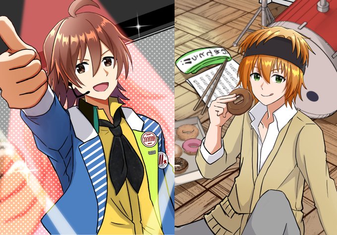 大遅刻&あまり時間かけられなかったですが、春名誕生日おめでとう🥰 ピンクとオレンジと青と水色のドーナツは四季、隼人、旬、夏来をイメージ。 #イラスト #若里春名 #SideM #絵描きさんと繋がりたい #若里春名生誕祭2022