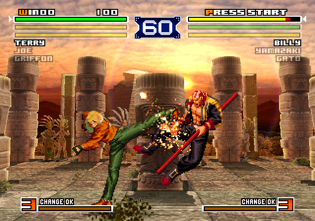 PS2 KOF2003 and SVC Chaos would get similar treatments as 2002. Higher resolution portraits/art. But maintains the original neogeo pixel art for the in-game sprites. SVC Chaos would not get 3D Stages though, just clean upscales. (8)