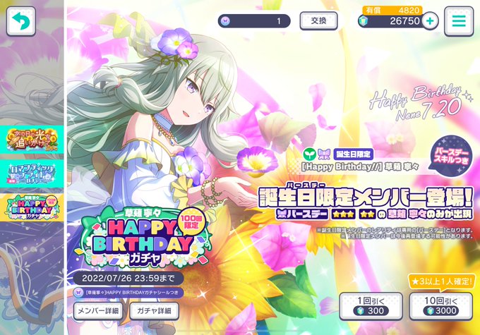 寧々ちゃんの★4、1枚しか持ってないから、ダメ元で引いたら、まさかの黄色からの昇華で1回でゲット!!(*‘ω‘ *)ありがたや~♪