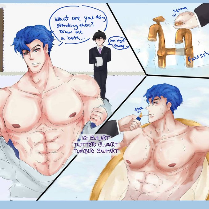 [reads L to R ] 🐶a mini comic based off of Ainosuke's immaculate bathrobe situation 💦💦 💦