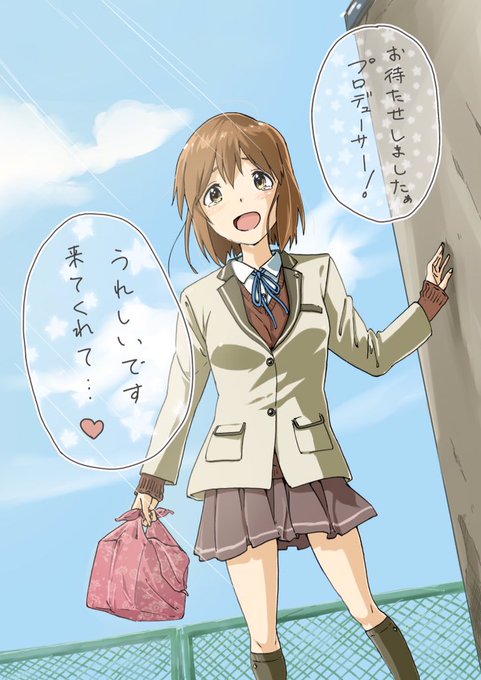 「プロデューサー、あの…お昼空いてましたよね?よかったら学校の屋上に来てくれませんか?」となぜか女子校に招かれた待機中のPに駆け寄ってきた天使の図。
