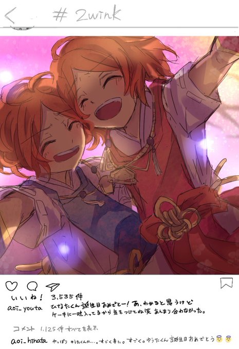 ひなたくんゆうたくんおめでとう!あんスタ始めたのもお絵描き始めたのも君たちがきっかけだったよ!ずっと大好き♡友達や先輩やファンにたくさん祝ってもらってね〜〜!!