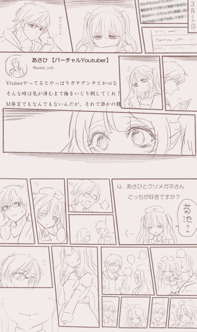 大変お待たせしました。今回は漫画ものです。私の視点で観測した尊みだけで構成されておりますゆえこの二人の絡みに対する苦情は一切認めておりません。(パイナポゥ)#クソメガネ #asahich #アンチアート #薬袋カルテ #karte_ns