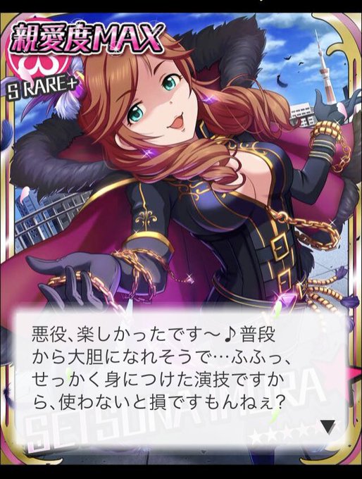 一方その頃モバマス井村雪菜は主役より目立ちかねないド派手な悪役を演じることで"引き立てる"と"目立つ"を両立させる感覚を習得していた