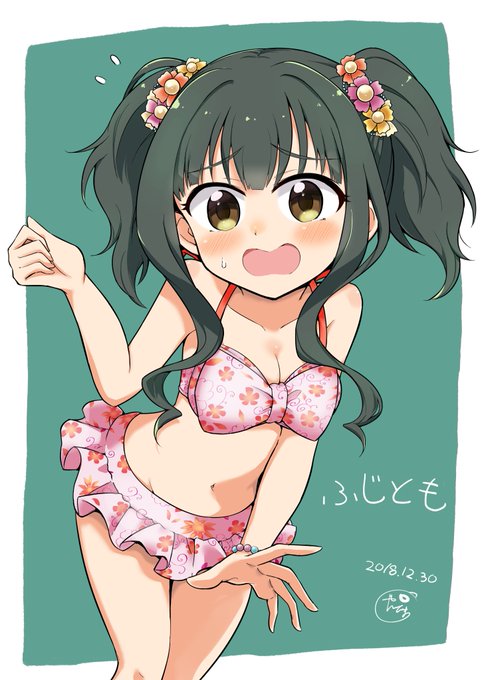 ちつぷP(@ch1tsupu )とWふじとも合作したよ😍双子コーデ(ビキニ)👯♀️ポストカードにするので、間に合えばコミケで無配予定です🙌 #藤居朋