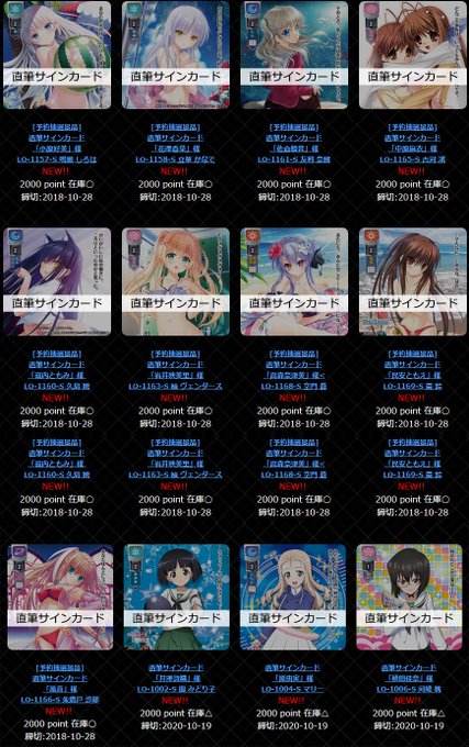リセオンラインパスポート景品を更新しました。ビジュアルアーツ 1.0直筆サインキャンペーンのポイント交換を開始し