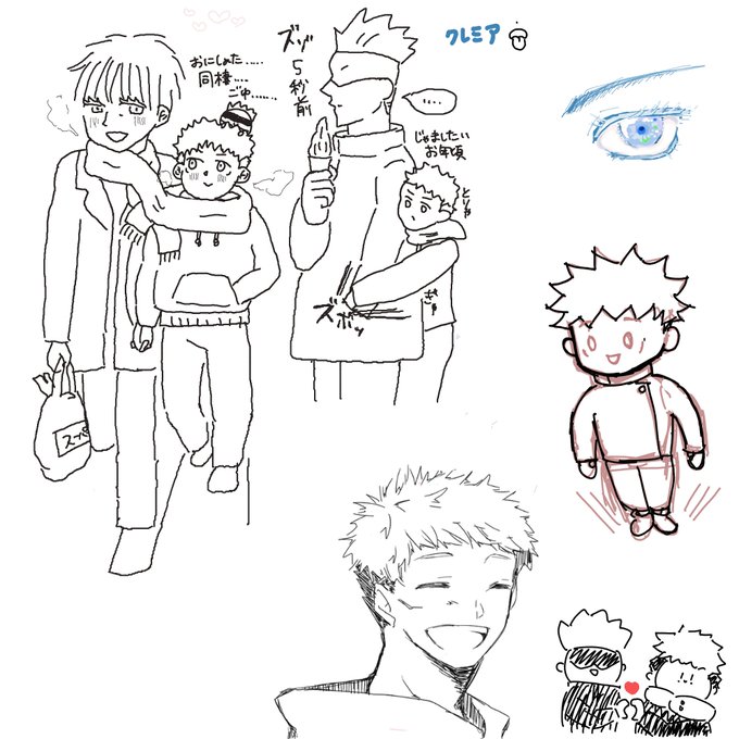らくがき:悠仁と脹相お兄ちゃん。カラフルな弟とモノクロな兄。全然似てないようで、自分を勘定に入れないとことか熱いとことか内面がすごく似ててほっこり。