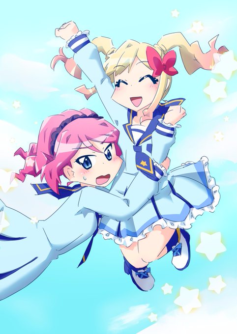 本日のアイカツスターズイラスト OPの空を飛ぶシーンが好きなので空を飛ぶゆめちゃんとローラちゃんです