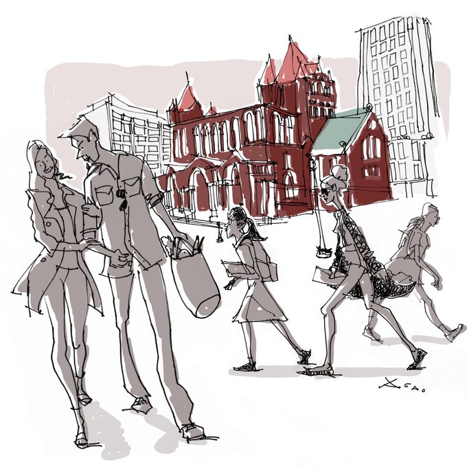 "Stroll'n Copley" #colour_collective #burntsienna #kidlit #Boston #illustration #annillustrates @Clr_Collective