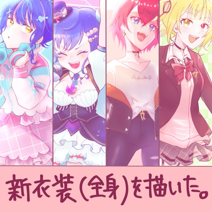 推しの新衣装(全身)を描いた。 #にじさんじ #天宮こころ #西園チグサ #アンジュ・カトリーナ #星川サラ #バーチャルYouTuber https://t.co/uptpUeyghA