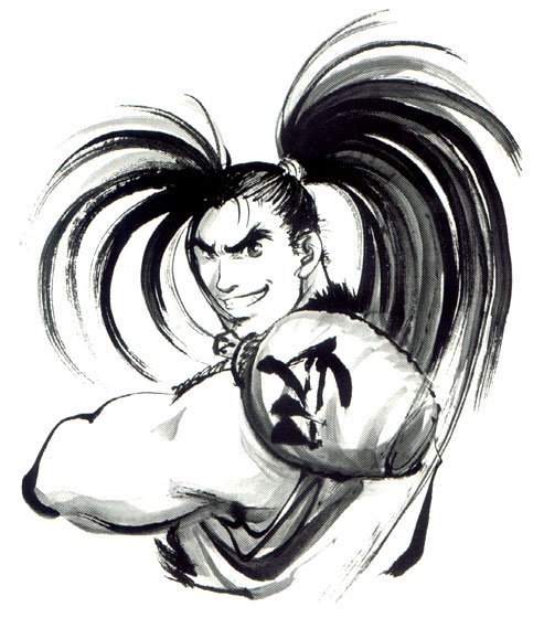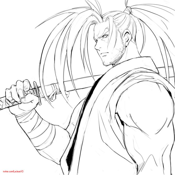RT<侍絵巻のもだけど、いとうゑいさんのイラスト、超スゴくて憧れます‼︎。あと今日も早番中に覇王丸なんか描いてた事は内緒だ! #サムスピ