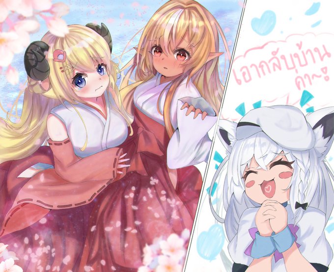 バカタレのなく頃に 🦊🔥🐏 ライブの追想のディスペア良すぎたので (2人には謎の力でロリ化してもらいました) #絵フブキ #しらぬえ #つのまきあーと #バカタレ