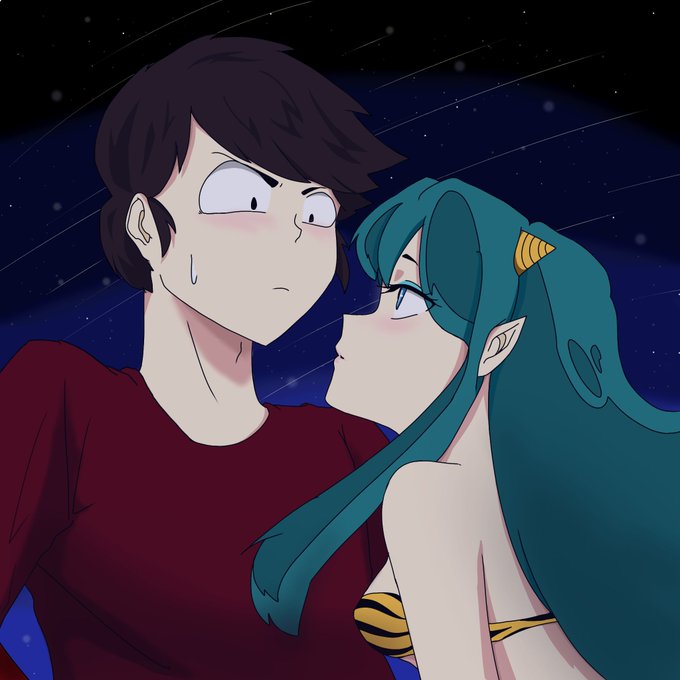 るーみっく特有?のラムちゃんを大きく描く構図、とても好きなので描いてみた、うまく配置できてない気がするけど頑張りました😭