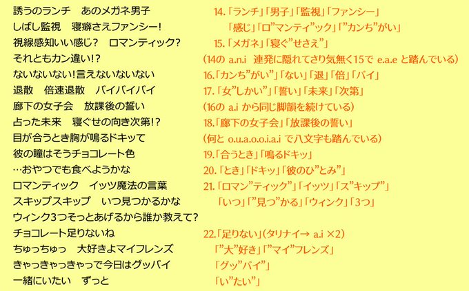 Romantic Now(井上拓さん作詞)を改めて聴くとかなり固く韻(ライム)を踏んでいることに気付いたので解説画像付き