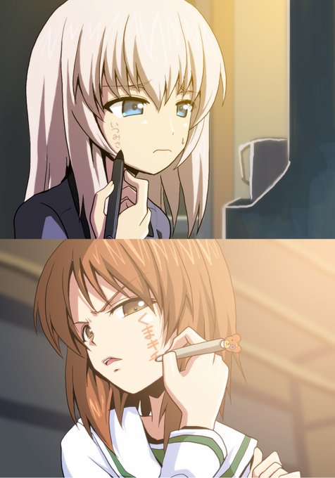 カチューシャちゃんの絶妙な腰のラインも最高だし、肩車して満更でもないエリカちゃんの表情が最高なワンシーン #ガルパン