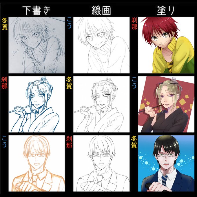下書きと線画と塗りをローテーションするやつ一緒にやってもらいました!