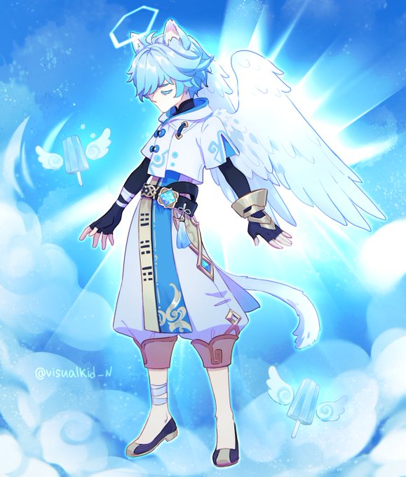 I'm late but Happy B-day to Chongyun! While taking screenshots for the references I was lucky to catch a glimpse of his true angel cat nature. Angelic flying icecream included #Chongyun #genshinimpact