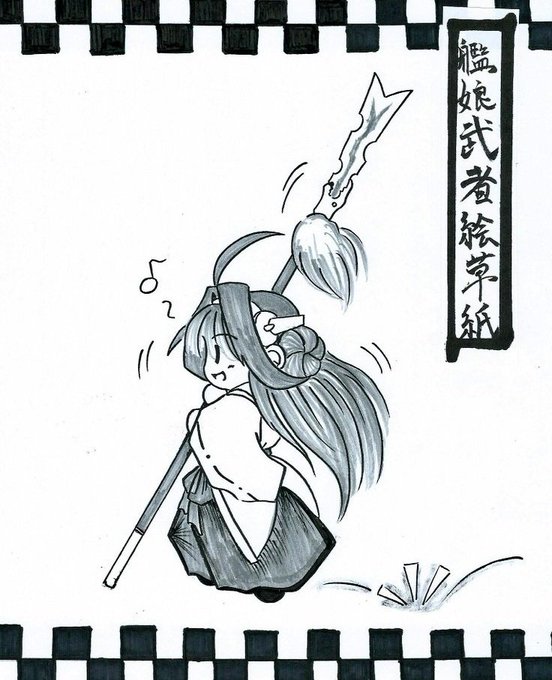 先日描いたメイド金剛ちゃんに合わせて霧隠さん(@kirigakure_ll)がメイド比叡ちゃん描いてくれたので並べてみましたー!