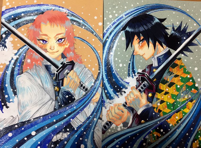 水を結構混ぜて塗ったから原画よれちゃった😅錆兎は生存ifです😌