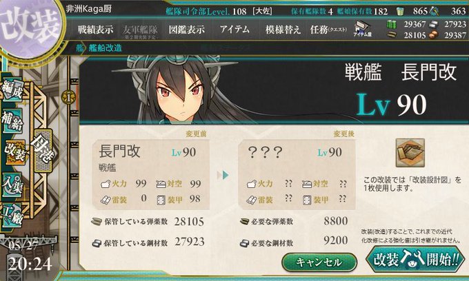 ちくちくと任務消化しつつのさならがで長門を漸く改二へ~ 資材がっつり喰われましたがね