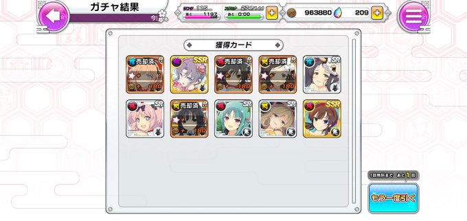 よしのちゃん人形とコラボチケットの枚数調整でスカウトしたら、ひとみちゃんとなつひちゃんゲト🎵よかよか🎵⤴️🎵