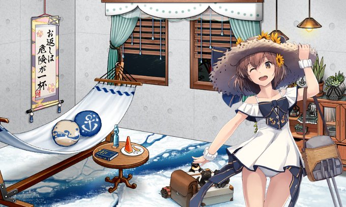 雪風改二の夏のお嬢さんmodeの立ち絵と中破絵。丹陽は改造して改二にしてまったからもう一人でっちあげるか?まだLv51なんだが。#艦これ