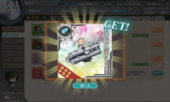4-5で沼ってしまいましたが残りの5-5と6-4はストレートで終わり、無事に短魚雷をGETできましたー!((o(*゚▽゚*)o))