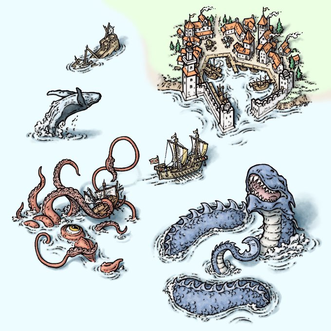 Here’s a peek at some of the CC3+ coastal symbols I created this month for @rpgmaps. That Kraken has his eye on YOU! Explore your imagination with more #fantasy #mapmaking goodies here - https://t.co/qWg72DnIL6