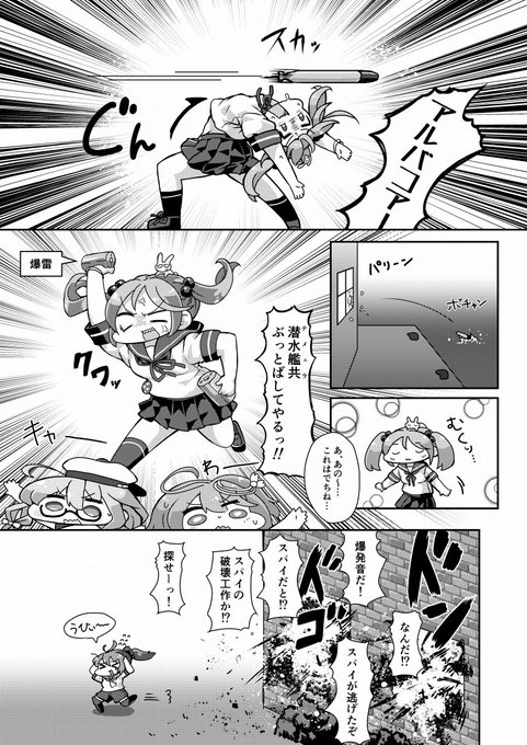 恐縮です。5/7日の砲雷撃戦で頒布する新刊告知です。青葉が深海勢力のスパイ疑惑をかけられて追われてしまう漫画です。