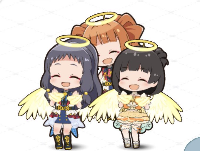 スキルに合わせて組んだけど、この3人めちゃ相性が良さそうで良い。エレナちゃんかわいいね #ポプマス #ポプマスジャケット