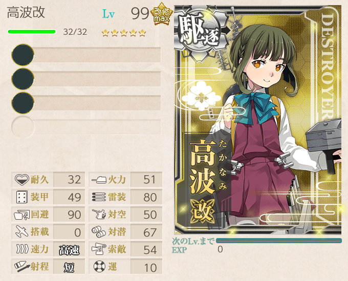 巻雲はLv.121で、その次が岸波のLv.84なので妹との練度差はかなりあります。