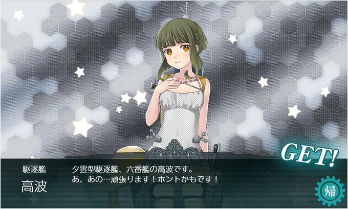 今回やっと夕雲が出た。2期から参入したとはいえ岸波や藤波がいて夕雲がいないのも珍しかったと思う。