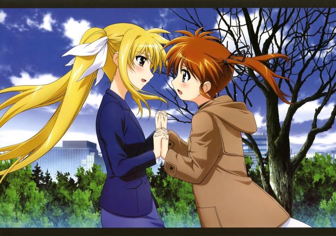 One of my favorite artworks of Nanoha & Fate is drawn by Type-Moon's Takashi Takeuchi.
