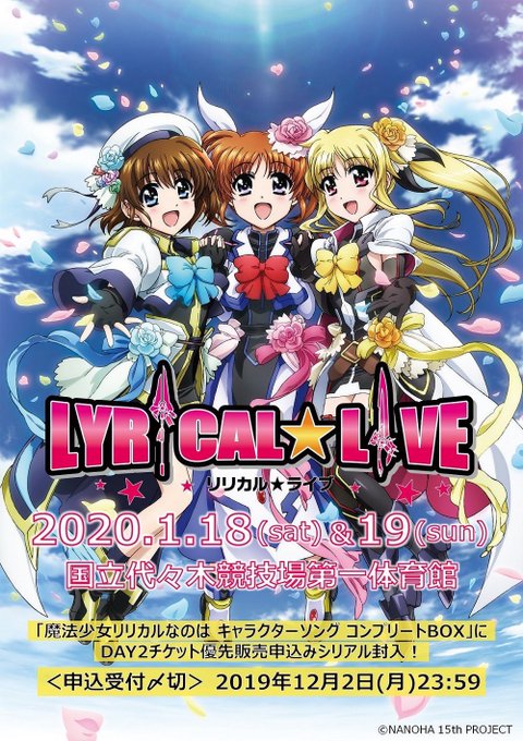 来年1/19(日)開催「リリカル☆ライブ」DAY2の優先販売申込受付は本日《12/2(月)23:59》まで!