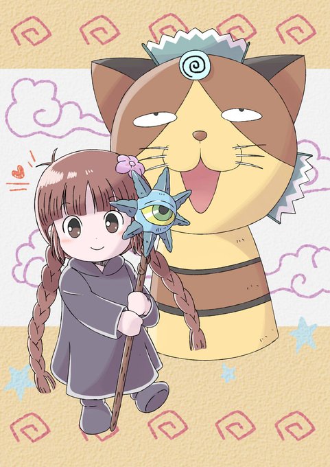 アニメ化記念も兼ねてのお絵かき。ニケがククリにリコの花飾りあげるシーンが好きで新アニメでも見られてうれしかったな―。ていうかこの二人が好きだ!これからも楽しみ!! #魔方陣グルグル
