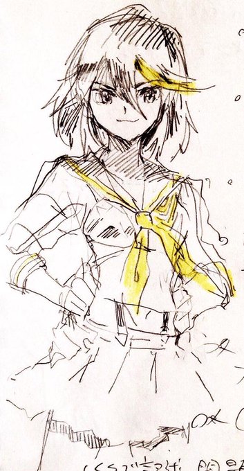 キルラキルhuluにあったので全部みた!プロメア見てからこっち見ちゃったから、またプロメアに戻りたいな!とにかくトリガー最高!見たままの勢いで流子ちゃん描いた!