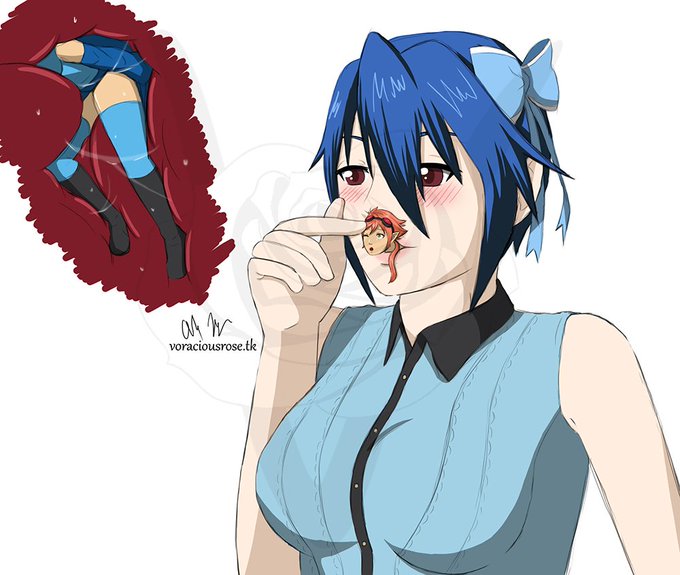 comm from @VoraciousRose featuring Tsumugi from Nisekoi. Slurping down Jessica with head last slurp. No danger is too big or small. or She was just hungry and saw a easily tasty snack.