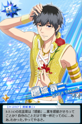 หนุ่มผู้ชอบทำตัวซึม เคยเป็นลูกคุณหนูของตระกูลทาคาโจ แต่เกิดเหตุการณ์ทะเลาะกับพ่อจึงย้ายออกจากบ้านและพยายามพิสูจน์ตัวเองว่าเป็นคนสมบูรณ์แบบได้โดยไม่พึ่งครอบครัว