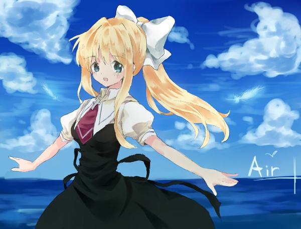 AIRから観鈴ちんです。イベント用の色紙の原案をそこはかとなく紙に描いていたら結構気に入ってしまったのでフォトショでも塗ってみました。リンゴの質感が難しかったです。上手い塗り方ご存知の方は是非ご教授下さい。