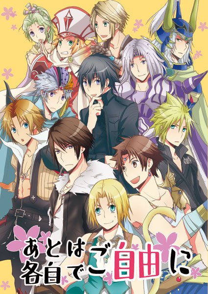 2/25の新刊、DFFNT本ですー!20ページの四コマの本、表紙にいるキャラでわいわいしてます。大きなネタバレはありません🤗 あとマーテリアはここだけなのでって一応かいておく