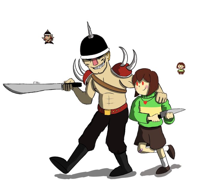 The Sadist Child and The Sadistic Manchild. Still pretty out of practice, but this was fun. #art #artist #artistsontwitter #illustration #illustrator #digitalart #ipadpro #procreate #applepenil #design #undertale #lisathepainful #undertaleFanart #buzzo #chara