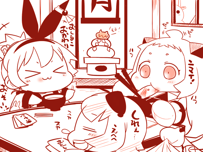 @10asahi 蒼紅命( @mikoto1106 )さんへレットちゃんから「あけましておめでとうなのですネー!このおぞうに?というおもちはとても美味しいのですネ!幸せ幸せな一年になるといいのですネ。大丈夫大丈夫、きっと」